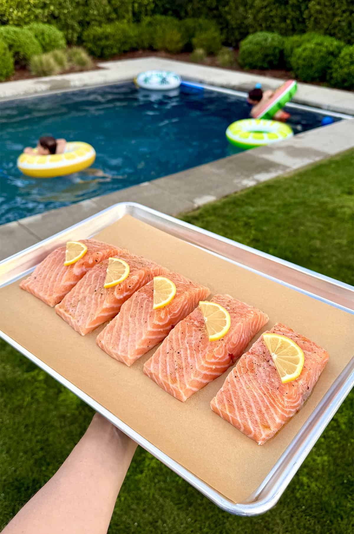 I didn’t grow up eating fish. It just wasn’t one of Noni’s favorite meals to cook (safe to say there were a million others!), so I didn’t really start eating salmon until I turned 30. We even shot a whole YouTube episode about my salmon journey, aptly titled Salmon for People Who Hate Salmon.